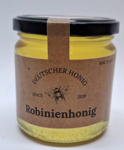 Im Mai schmücken sich die imposanten Robinienbäume mit prächtigen, herrlich duftenden Blütentrauben – ein Fest für unsere Bienen. Ebenso besonders wie die knorrige Robinie ist ihr heller, zartgelber Honig, der einen wunderbaren Duft nach Sommer verströmt und sehr lange flüssig bleibt. Er enthält die wertvollen Inhaltsstoffe der Heilpflanze Robinie und wird gerne als Hausmittel bei Erkältungen eingesetzt: Ein Löffel davon im Tee verschafft Linderung z.B. bei Bronchialbeschwerden. Kenner schätzen den lieblichen, unaufdringlichen Geschmack und die flüssige Konsistenz. Robinienhonig schmeckt nicht nur als Aufstrich und im Müsli lecker, er eignet sich auch hervorragend für Salatdressings und feine Saucen oder als süßes Topping für Pfannkuchen und Waffeln.